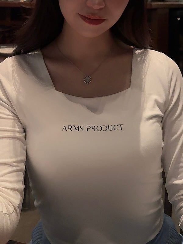 デコルテ周りが華奢に見えるスクエアネックに、もちもちとした生地感で着心地抜群。へそ上ほどの丈になります。